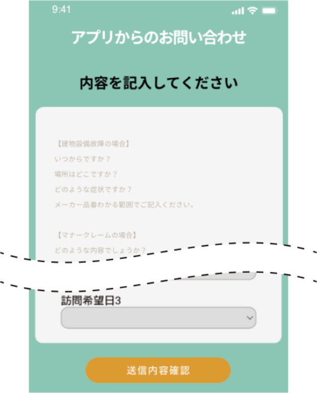 入居者様は、アプリからトラブル内容や写真をアップすることも可能ですので、コロナ禍での対面を減らすことができます。直接電話することも直感的に行うことができます。