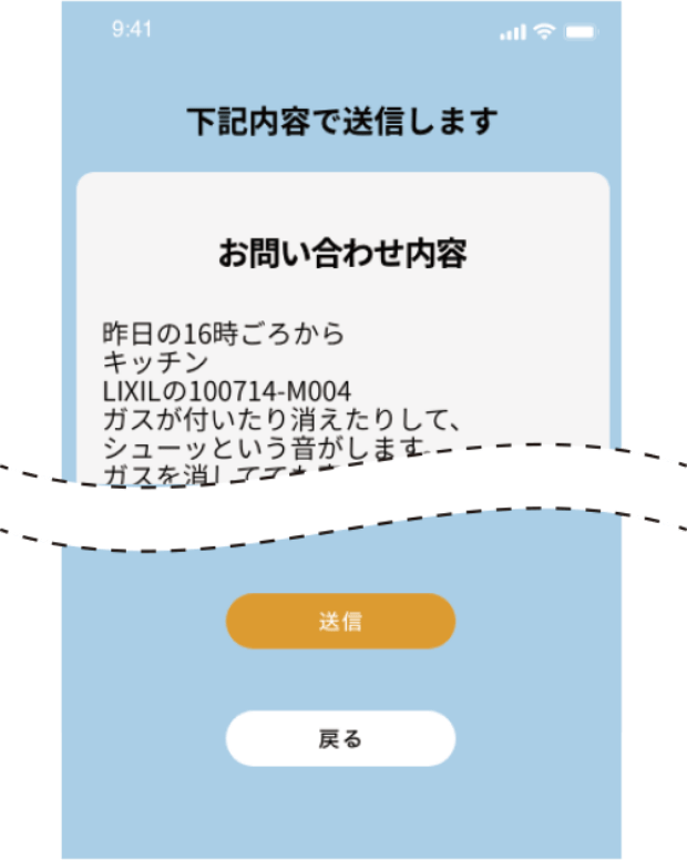 入力フォームに不具合内容などの必要情報を入力いただき、「送信内容確認」ボタンをタップ!