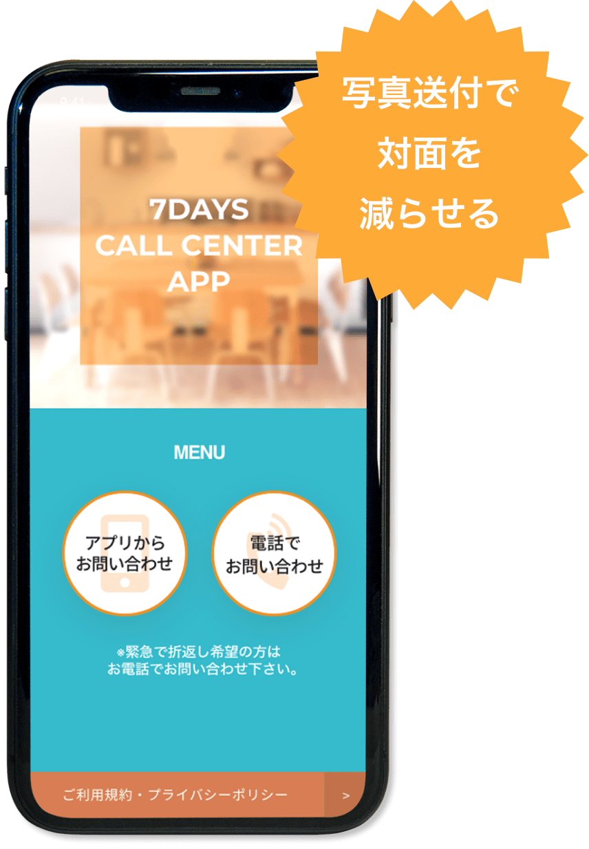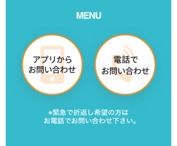 メニュー画面の「電話でお問い合わせ」をタップいただくと、直接コールセンターに繋がります!